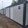 VHODNA VRATA: aluminijast profil v beli barvi (RAL 9010) ali antracitni (RAL 7016), s sendvič polnilom v kompletu z ročajem, ključavnico in ključi (3 kopije ključa); lahko so pol zastekljena z vertikalnimi rešetkami (dim. 950 cm x 205 cm) ali polna (dim. 800 cm x 205 cm). Po naročilu vam lahko vgradimo tudi druge dimenzije vrat.